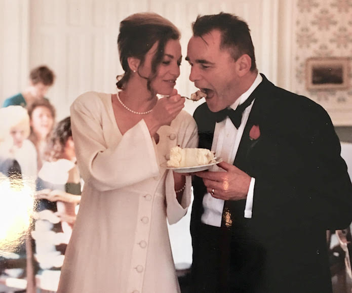 In one of our wedding photos, I’m feeding you cake. It’s a traditional wedding shot, there’s nothing particularly special about it, and yet for some reason this year I looked at it more closely. I saw me leaning in, encouraging you to eat like a mother pleased to be spooning vegetables past the closed lips of a child. I saw you with your mouth wide open, trusting that I would not punk you by smearing cake on your face or retracting the fork at the last moment. I saw the truth: your hand was helping mine to steady the plate.